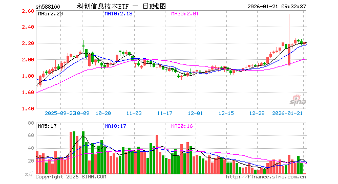 科创信息技术ETF(588100)业绩比较基准为上证科创板新一代信息技术指数收益率,管理人为嘉实基金管理有限公司,基金经理为张钟玉,成立(2022-05-18)以来回报为118.67%,近一个月回报为18.19%。