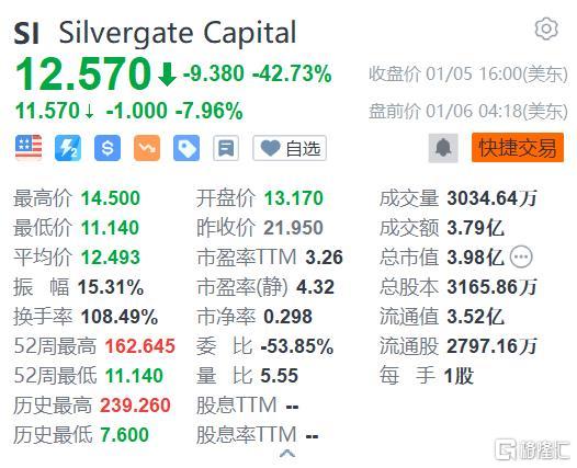 格隆汇1月6日丨Silvergate Capital(SI.US)盘前跌7.96%,报11.57美元。BTIG分析师Mark Palmer将Silvergate Capital的目标价从51美元下调至21美元,此前该公司第四季度初步更新显示,该季度数字资产客户存款环比下降68%。帕尔默在一份研究报告中告诉投资者,这一消息让投资者开始思考Silvergate资产负债表萎缩对其盈利能力的影响,不过他对该公司股票的评级仍为“买入”,并认为该公司仍然处于有利地位,可以从机构采用数字资产中受益。
