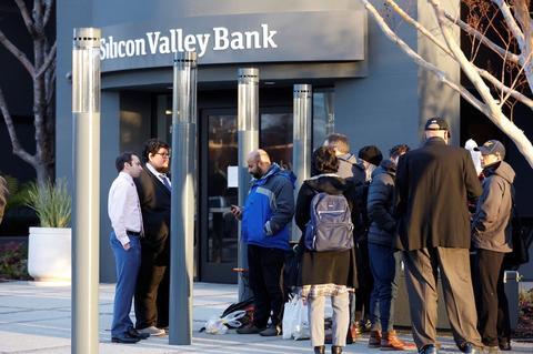 美国硅谷银行破产,储户排长队取款。(资料图)