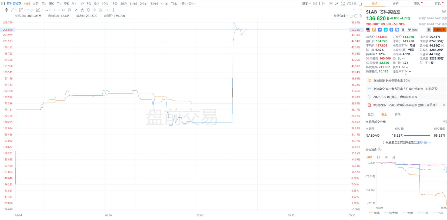 格隆汇2月4日|芯科实验室(Silicon Labs)(SLAB.US)盘前直线拉升,现大涨50%。消息面上,德州仪器已同意以75亿美元收购芯片企业芯科实验室。根据两家公司发布的联合声明,芯科实验室的股东将获得每股231美元的现金。交易预计将在2027年上半年完成。