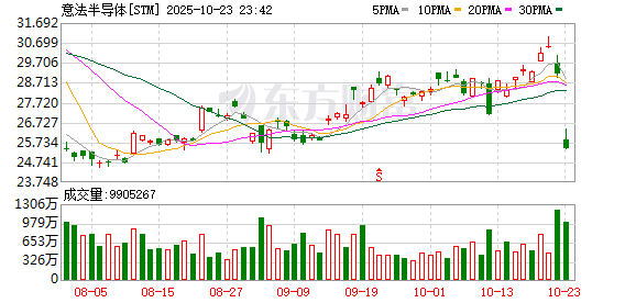 意法半导体跌超12%,其三季度营业利润为1.8亿美元,不及市场预期。