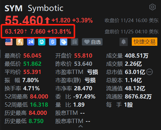 仓库自动化公司Symbotic(SYM.US)。消息上,Symbotic2025财年第四季度营收为6.18亿美元,净亏损1900万美元,调整后息税折旧摊销前利润(经调整 EBITDA)为4900万美元。