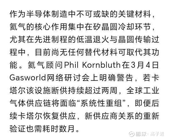 卡塔尔氦气断供➡️ 存储芯片减产概率增大