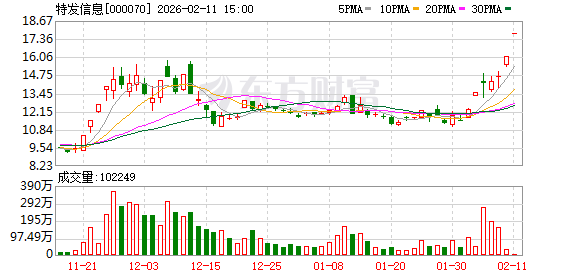 2月11日,特发信息(000070)发布公告,公司股票在2026年2月10日至11日连续2个交易日,收盘价格涨幅偏离值累计超过20%。