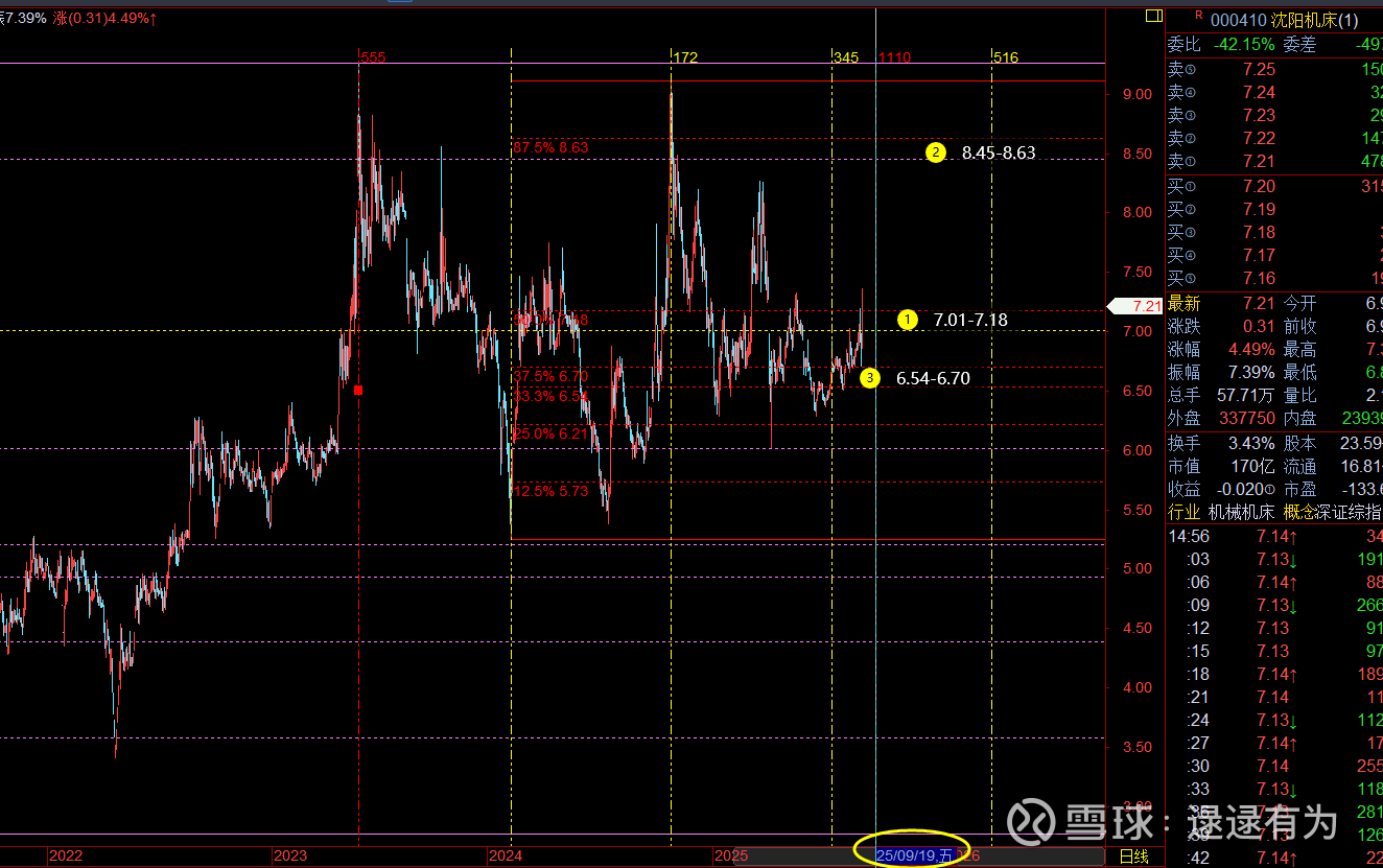 6.54-6.70这个支撑已经脱离了,空间压力7.0-7.18区间。再往上就是8.5附近。