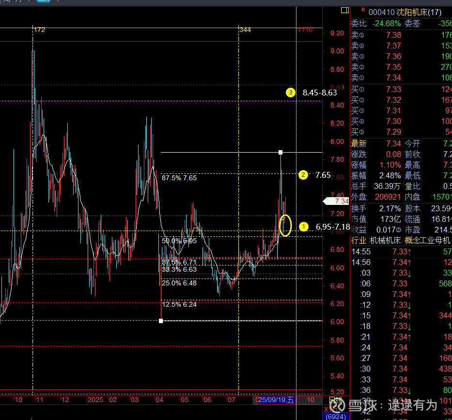 : 重新回踩支撑区,空间支撑6.95-7.18区间,压力7.65、8.45-8.63区间。