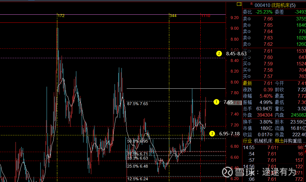 :重新回踩支撑区,空间支撑6.95-7.18区间,压力7.65、8.45...