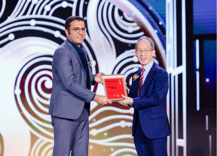 美国硅谷阳气整合医学中心首席执行官李宗恩(左)美国硅谷阳气整合医学中心首席执行官李宗恩,是拥有斯坦福大学电机工程博士学位的跨界医者,因深耕中医与AI、大数据融合,以理工科思维解码中医智慧、推动中医现代化阐释而获致敬。他认为,AI是中医走向世界的“帮手”,旨在将中医经验转化为可量化、可验证的系统方案。他建议公众以辩证、开放、理性的态度看待和应用中医智慧。北京中医药大学国学院首任院长、其成书院院长张其成为李宗恩颁奖,并围绕中医与科技的融合展开现场对话。