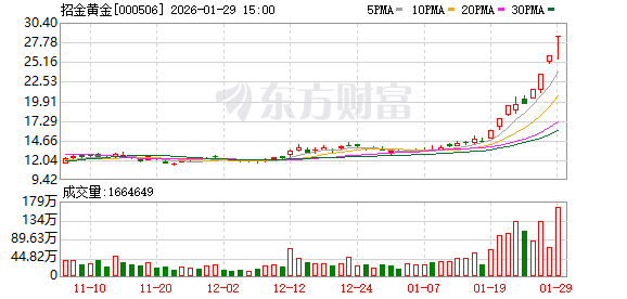 【大河财立方消息】1月29日,招金国际黄金股份有限公司(简称招金黄金,000506.SZ)发布异动公告。
