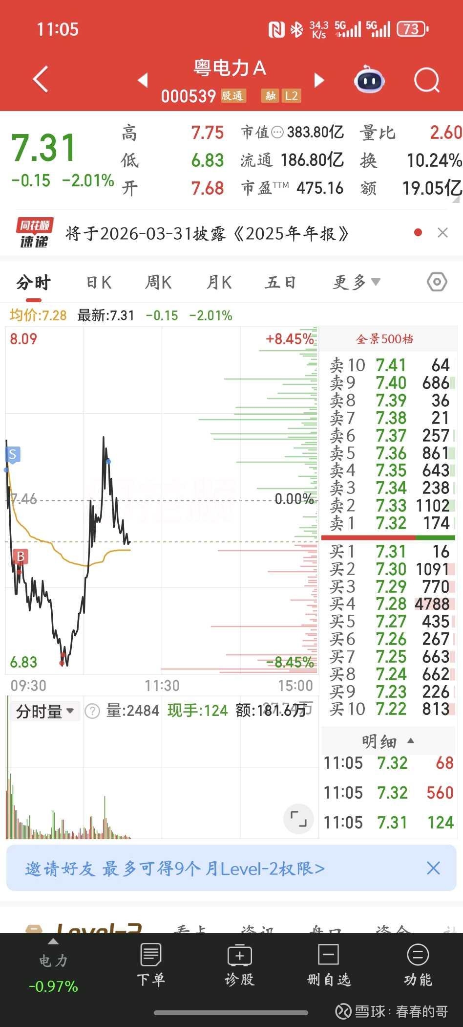 3月30日,买入粤电力A,磨炼自己,从电力开始....
