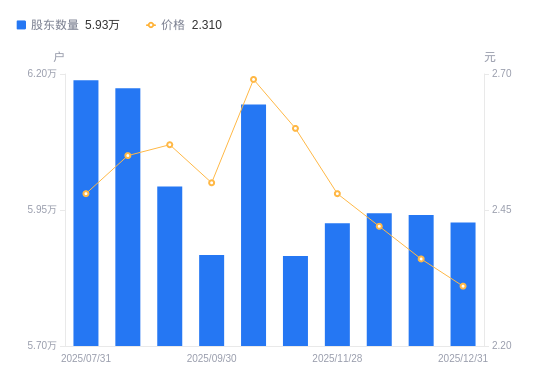 近一年(2025年2月20日至2026年1月30日),甘肃能化A股股东户数从6.79万户,减低至6.06万户,降幅10.80%,区间股价下跌0.08%。