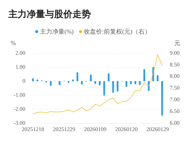 该股今日主力净量为负,且值较大,表明主力大幅流出,主动卖出明显多于主动买入。与此同时,今日换手率较高,主力抛售的嫌疑较大。投顾建议:投资者短期宜合理控制仓位,谨慎为佳。