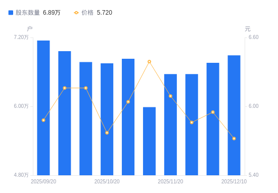 近一年(2024年12月31日至2025年11月21日),湖北广电A股股东户数从7.82万户,减低至6.56万户,降幅16.08%,区间股价上涨40.19%。