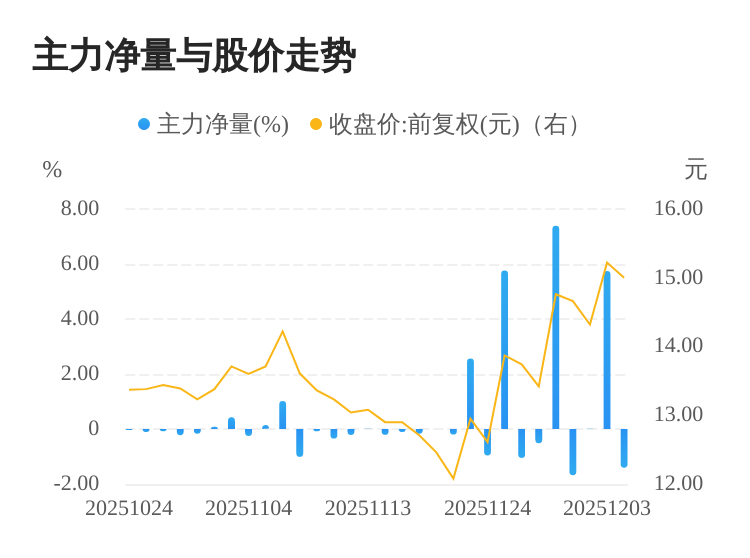 该股今日主力净量为负,且值较大,表明主力大幅流出,主动卖出明显多于主动买入。与此同时,今日换手率较高,主力抛售的嫌疑较大。投顾建议:投资者短期宜合理控制仓位,谨慎为佳。