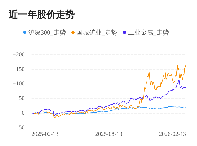 02月13日,国城矿业(000688)股价继续上涨。截至今日收盘,国城矿业上涨2.83%,收盘价为32.38元,盘中股价最高触及33.00元,股价创历史新高。