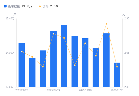 近一年(2025年2月28日至2026年1月30日),冠捷科技A股股东户数从15.8万户,减低至13.6万户,降幅13.92%,区间股价下跌14.72%。