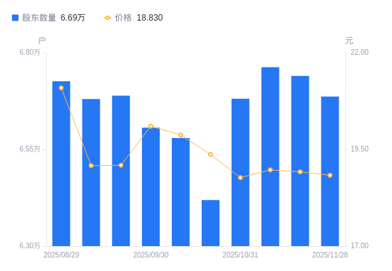 12月1日消息,数据显示,截至2025年11月28日,航发控制A股股东总户数为6.69万户,较上期(2025年11月20日)减少534户,降幅0.79%。公司最新A股总股本为13.15亿股,其中流通A股13.15亿股,户均持有流通A股数量为1.97万股,较上期增加155.84股,增幅0.80%;户均持流通A股市值37.04万元,较上期增加1178.3元,增幅0.32%。