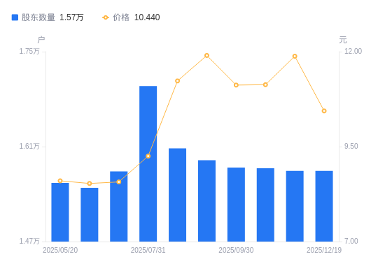 近一年(2024年12月20日至2025年12月19日),ST西发A股股东户数从1.61万户,减低至1.57万户,降幅2.20%,区间股价上涨10.71%。