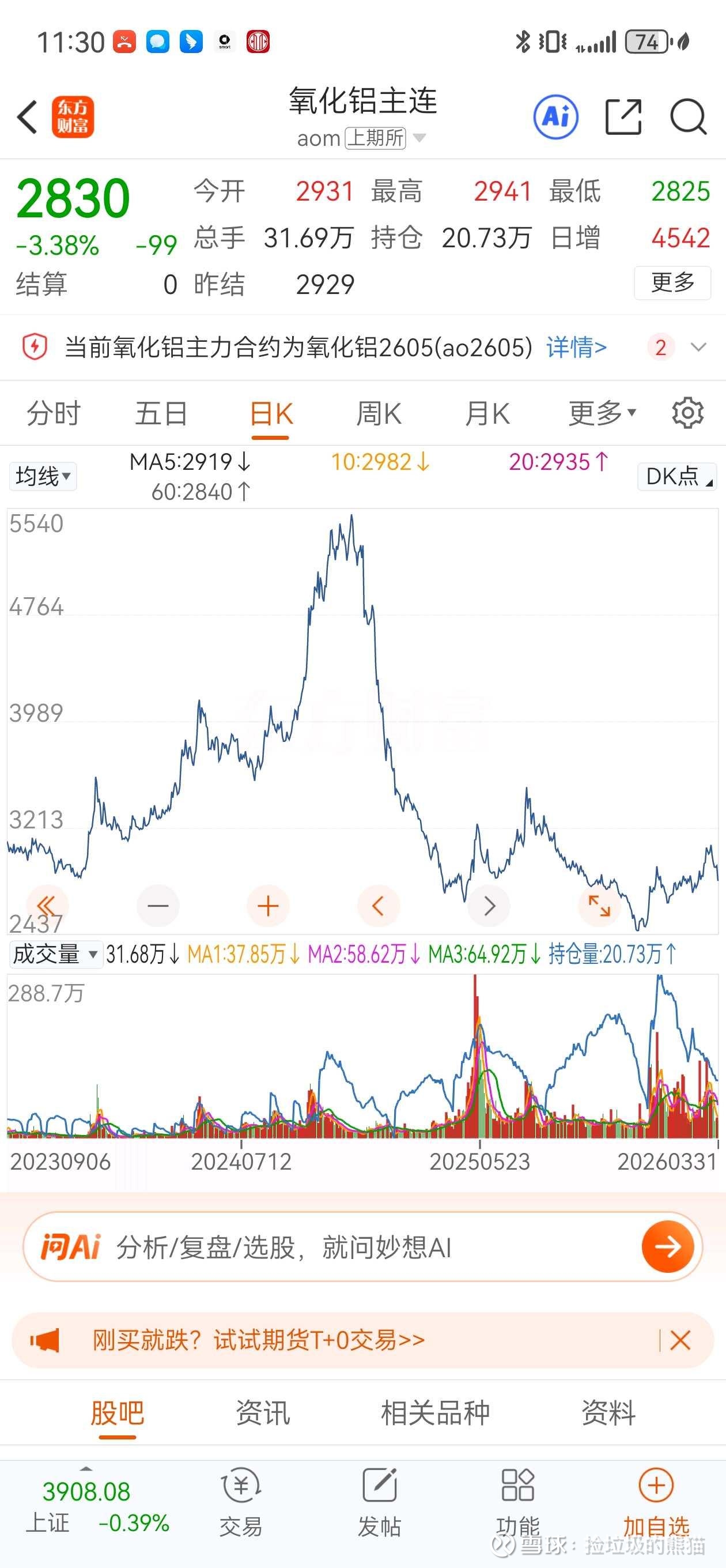 电解铝和氧化铝走势基本符合周末预想,股价确实烂的一批,难道股权真的只是筹码?实在没钱了,有钱我想做神火大股东。