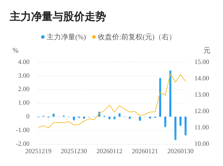 该股今日主力净量为负,且值较大,表明主力大幅流出,主动卖出明显多于主动买入。与此同时,今日换手率较高,主力抛售的嫌疑较大。投顾建议:投资者短期宜合理控制仓位,谨慎为佳。