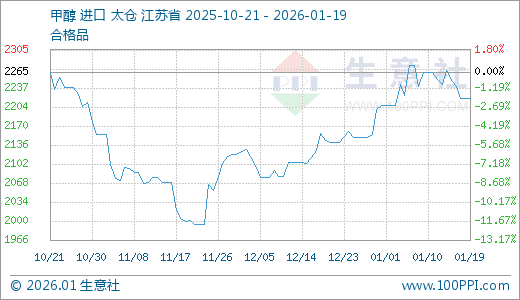 据生意社监测,甲醇01月19日最新价格2218.33元/吨,最近60天上涨10.81%。
