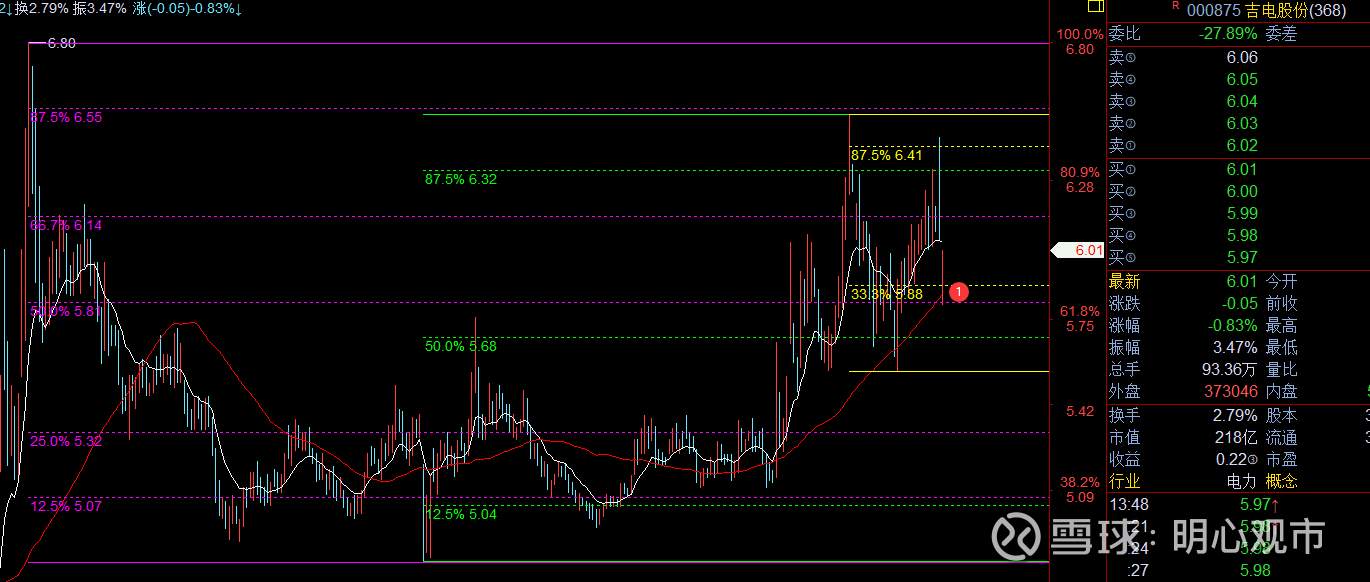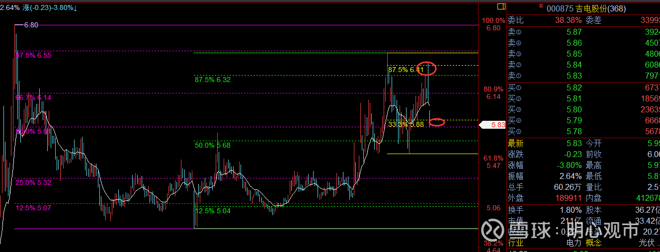 1.趋势,当前处于日白线5.38上,短期看多;并处于红色生命线上,波段看多,短线波段有共振信号;