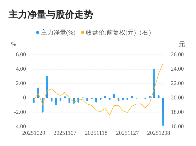 该股今日主力净量为负,且值较大,表明主力大幅流出,主动卖出明显多于主动买入。与此同时,今日换手率较高,主力抛售的嫌疑较大。投顾建议:投资者短期宜合理控制仓位,谨慎为佳。