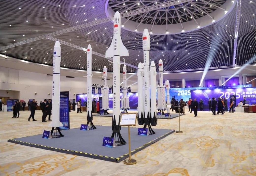 同时,天兵科技作为2024年全球独角兽企业且在商业航天领域排名第一的创新公司,展示其“三机两箭”产品系列下的多款火箭模型,包括TL-3、TL-3H、TL-3M和TL-2。据了解,天兵科技自2019年成立以来,已成功实现天龙二号液体运载火箭商业化运行,正积极推进天龙三号大型液体运载火箭的研制,预计2025年底首飞,未来将形成年产超30发的商业发射能力。