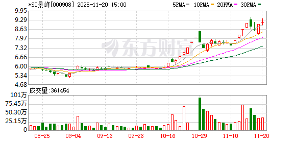 11月20日,*ST景峰(000908)发布公告,公司于2025年10月21日收到法院裁定受理彭东钜、上海鑫绰投资管理有限公司对公司的重整申请,并指定北京市中伦律师事务所担任公司管理人。