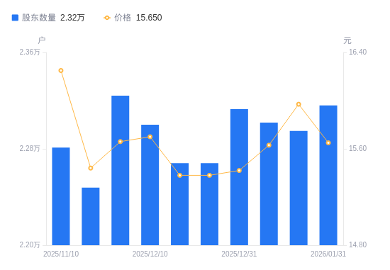 近一年(2025年1月31日至2026年1月31日),钱江摩托A股股东户数从1.98万户,增加至2.32万户,增幅17.11%,区间股价下跌17.72%。
