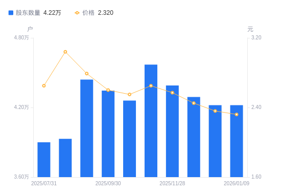 近一年(2025年1月10日至2026年1月9日),福星股份A股股东户数从4.47万户,减低至4.22万户,降幅5.59%,区间股价下跌3.73%。
