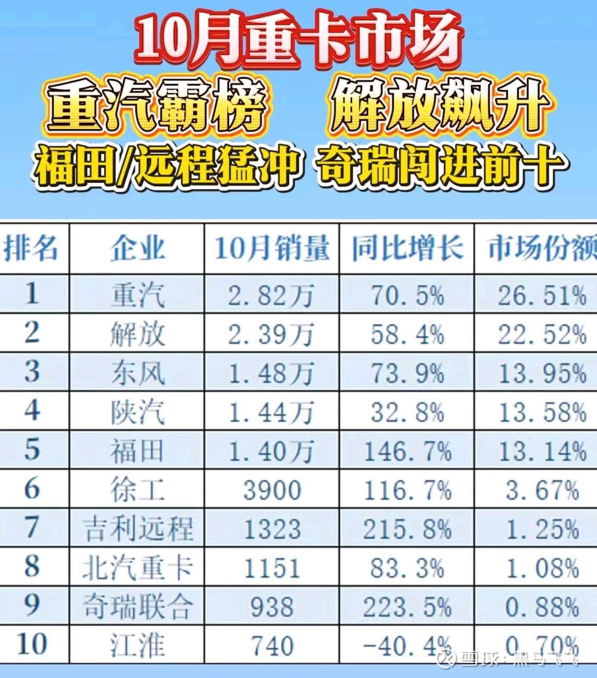 股价不知道~「从产销情况看,公司较去年同期实现较好增长,并好于行业水平<<<」2025 年 1-10 月, 我国重卡市场累计销售 92.90 万辆,同比累计增长 24%,10月同比增长 60%。