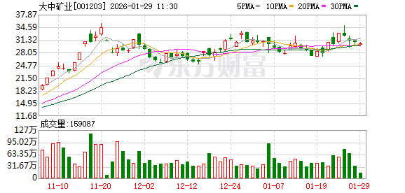 2025年前三季度,大中矿业实现收入30.25亿元,归母净利润5.94亿元。