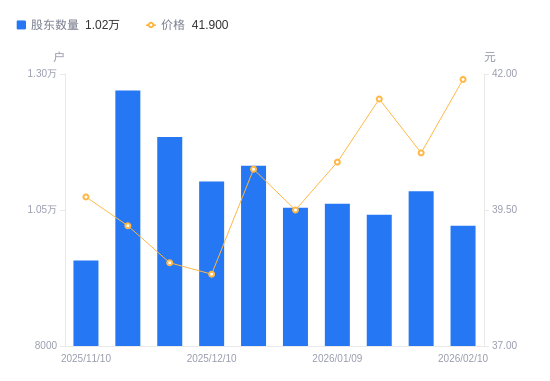 近一年(2025年2月10日至2026年2月10日),速达股份A股股东户数从1.02万户,减低至1.02万户,降幅0.20%,区间股价上涨12.90%。