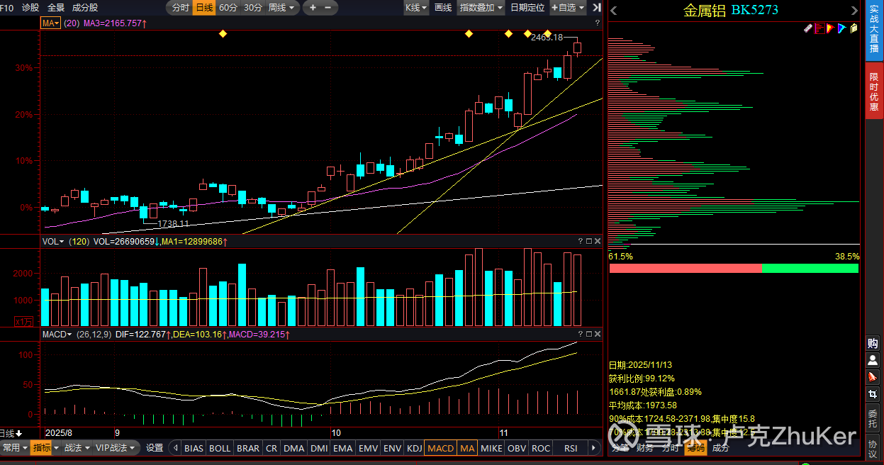 周线平台实体突破,MACD指标0轴之上的同步新高