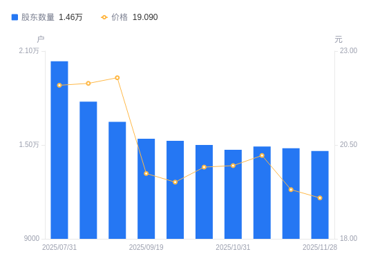 近一年(2024年11月29日至2025年11月28日),长青科技A股股东户数从1.74万户,减低至1.46万户,降幅16.09%,区间股价上涨6.24%。
