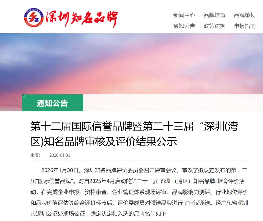 再获“深圳知名品牌”荣誉,品牌实力获市场持续认可