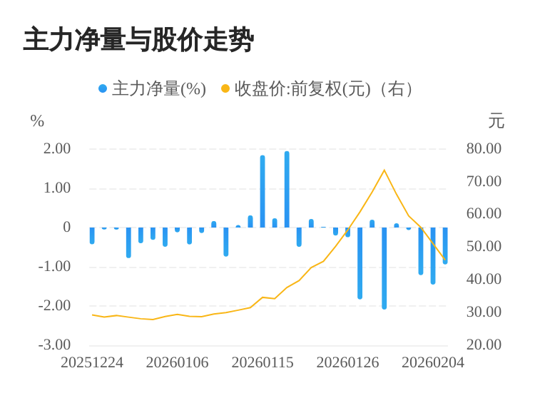 该股今日主力净量为负,且值较大,表明主力大幅流出,主动卖出明显多于主动买入。与此同时,今日换手率较高,主力抛售的嫌疑较大。投顾建议:投资者短期宜合理控制仓位,谨慎为佳。