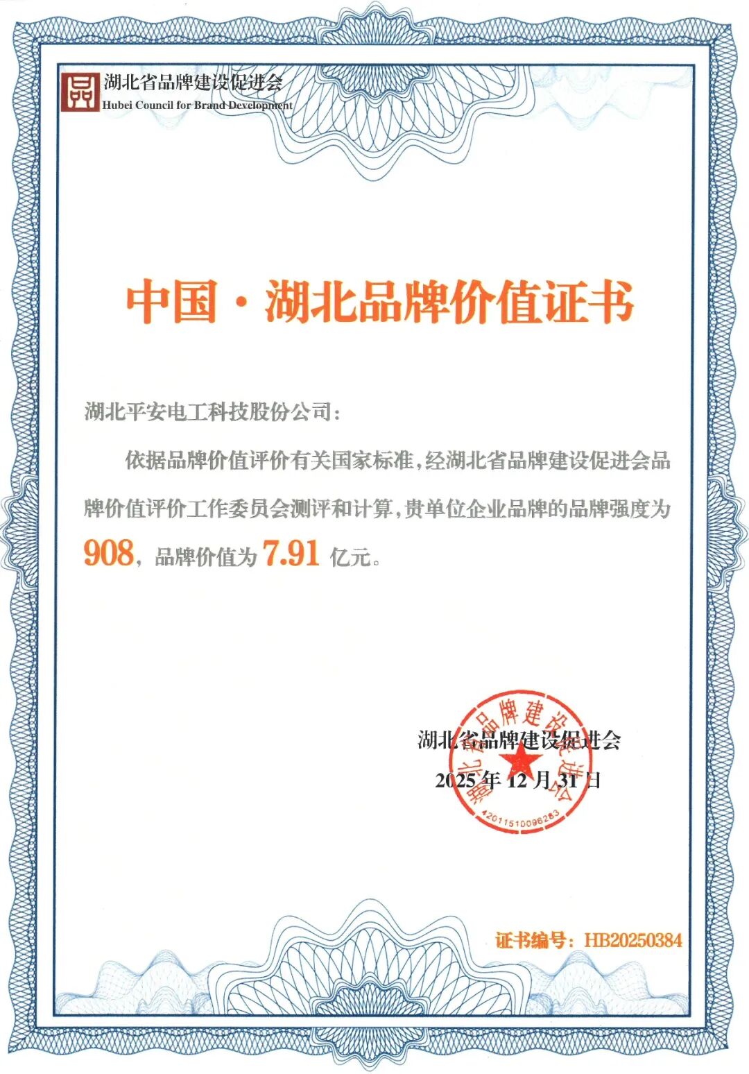 在此次盛会中,我们湖北平安电工(001359)科技股份公司很荣幸作为全省优秀企业代表,荣获了“中国·湖北品牌价值证书”。这份荣誉,是对我们在绝缘材料领域全球影响力与持续贡献的高度认可。