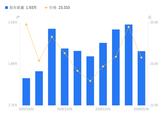 近一年(2025年2月20日至2026年1月30日),华纬科技A股股东户数从1.45万户,增加至1.93万户,增幅33.79%,区间股价上涨25.86%。