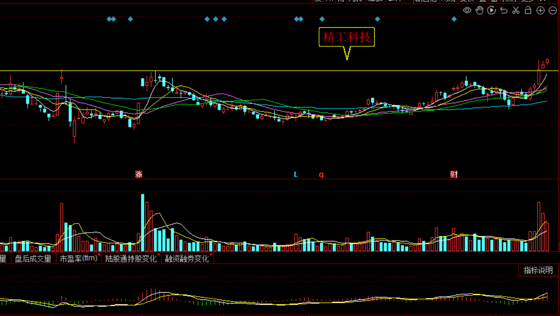 精工科技连续两天缩量,是不是买盘枯竭呢,我认为不是,恰恰相反,这是分歧转一致的趋势,因为昨天用更小的量,涨幅比前天还略大一些,这是向上洗盘,当标的逐步向上的时候分歧反而减小了,今天加仓。
