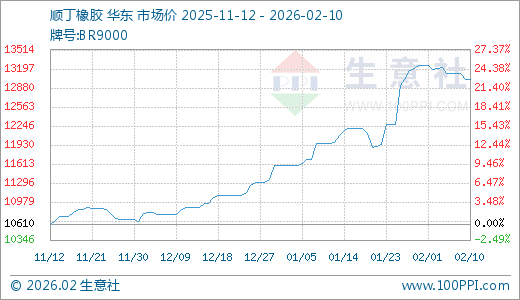 据生意社监测,顺丁橡胶02月10日最新价格13020.00元/吨,最近60天上涨19.56%。