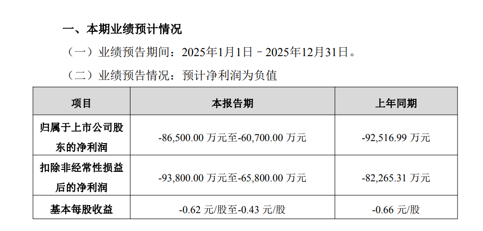 1月30日,达安基因公告称,2025年预计归属于上市公司股东的净利润为-8.65亿元至-6.07亿元,上年同期为-9.25亿元;扣非后净利润为-9.38亿元至-6.58亿元,上年同期为-8.23亿元。