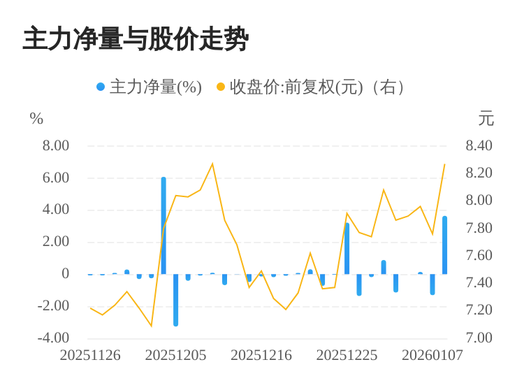 巨轮智能(002031)01月08日主力(dde大单净额)净流入5.87亿元,涨跌幅为6.57%,主力净量(dde大单净额/流通股)为3.65%,两市排名20/5183。