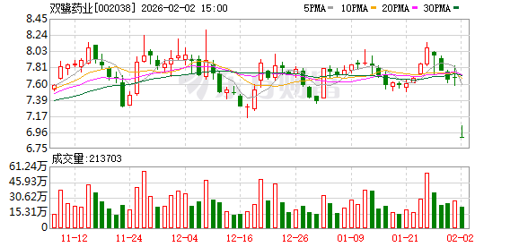 交易行情显示,2月2日,双鹭药业以跌停开盘,尽管在交易过程中,跌停板曾短暂被打开,但旋即重新封死跌停至收盘,最终报跌停价6.9元/股,跌幅为10.04%。