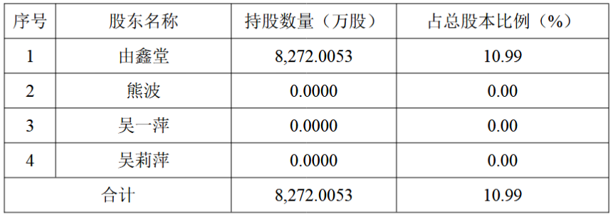 一致行动协议到期时,股东由鑫堂、熊波、吴一萍、吴莉萍持股情况如下:
