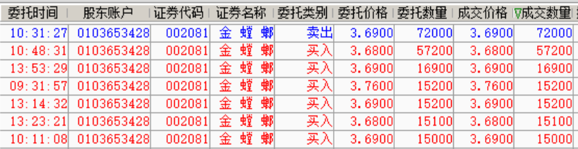 今天幺蛾子,一个账户本来是想3.69买进金螳螂,结果点成了卖出