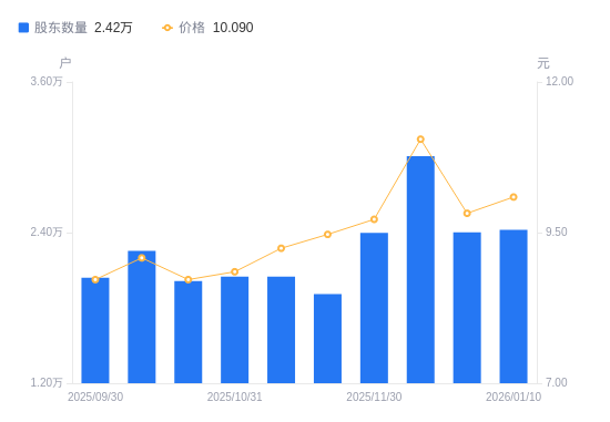 近一年(2025年1月10日至2026年1月10日),浔兴股份A股股东户数从1.41万户,增加至2.42万户,增幅72.34%,区间股价上涨32.41%。