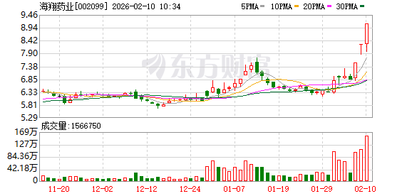 人民财讯2月10日电,染料板块震荡走强,海翔药业三连板,吉华集团此前涨停,善水科技、闰土股份等跟涨。