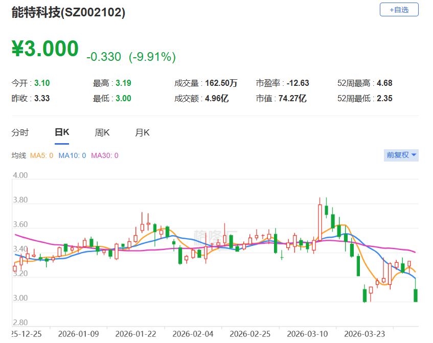 能特科技(002102.SZ)大幅下跌封跌停板,报3元,总市值74.27亿元。消息上,能特科技猪肉晚间公告,公司收到中国证监会下发的《立案告知书》,因涉嫌信息披露违法违规,根据法律法规,中国证监会决定对公司立案。目前,公司各项生产经营活动正常有序开展,在立案调查期间,公司将积极配合中国证监会的调查工作,并严格按照相关法律法规和监管要求及时履行信息披露义务。
